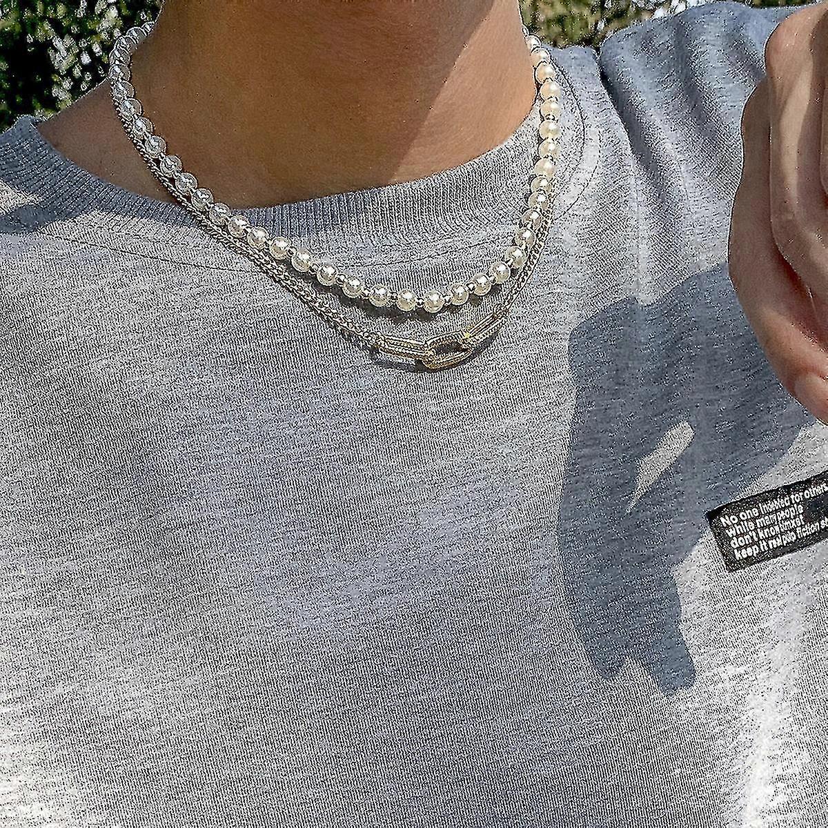 Hip Hop Retro Imitation Pearl Men's Necklace, White K Set 2564