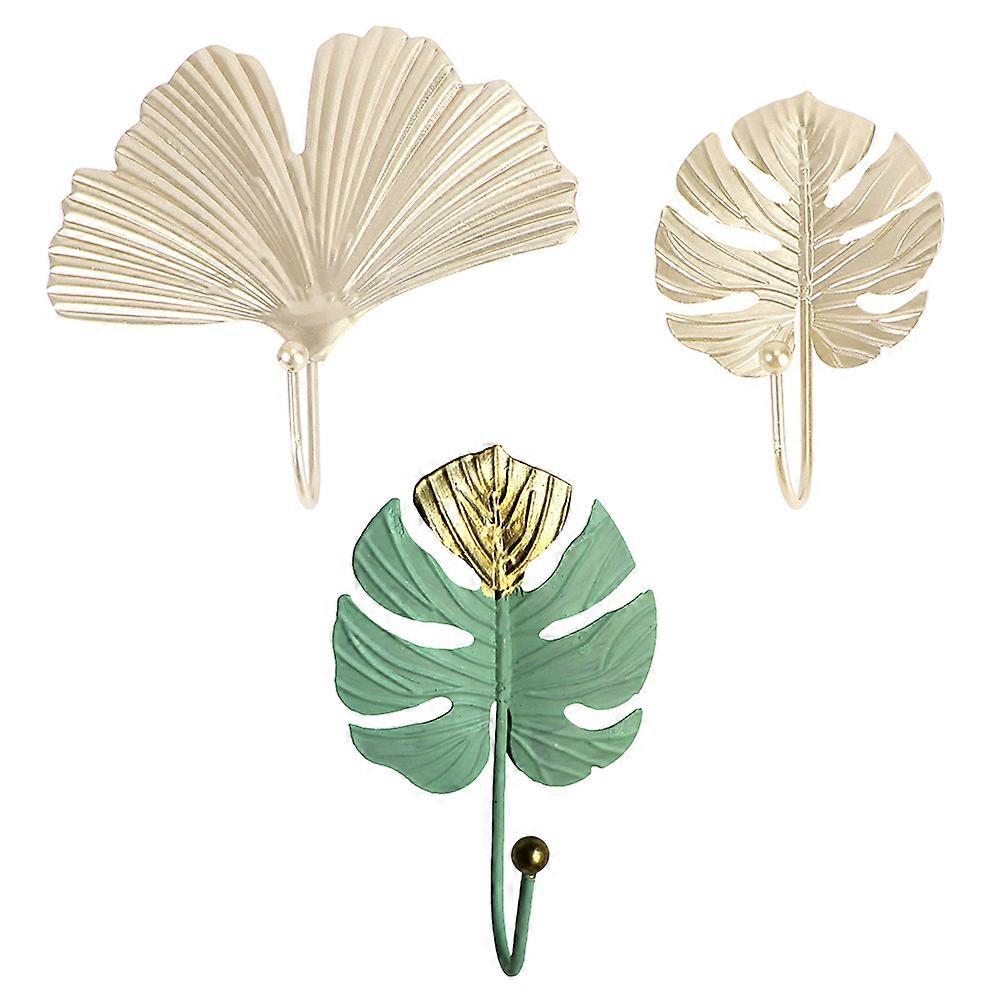 Home Decorative Hooks Iron Wall Hook for Storage Use 3Pcs Leaf