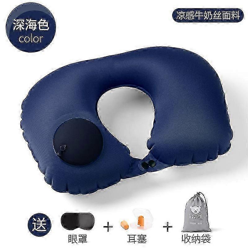 Inflatable U-Shaped Travel Pillow Set - TPU Material with Ice Silk Cover for Comfortable Neck Support on Trips