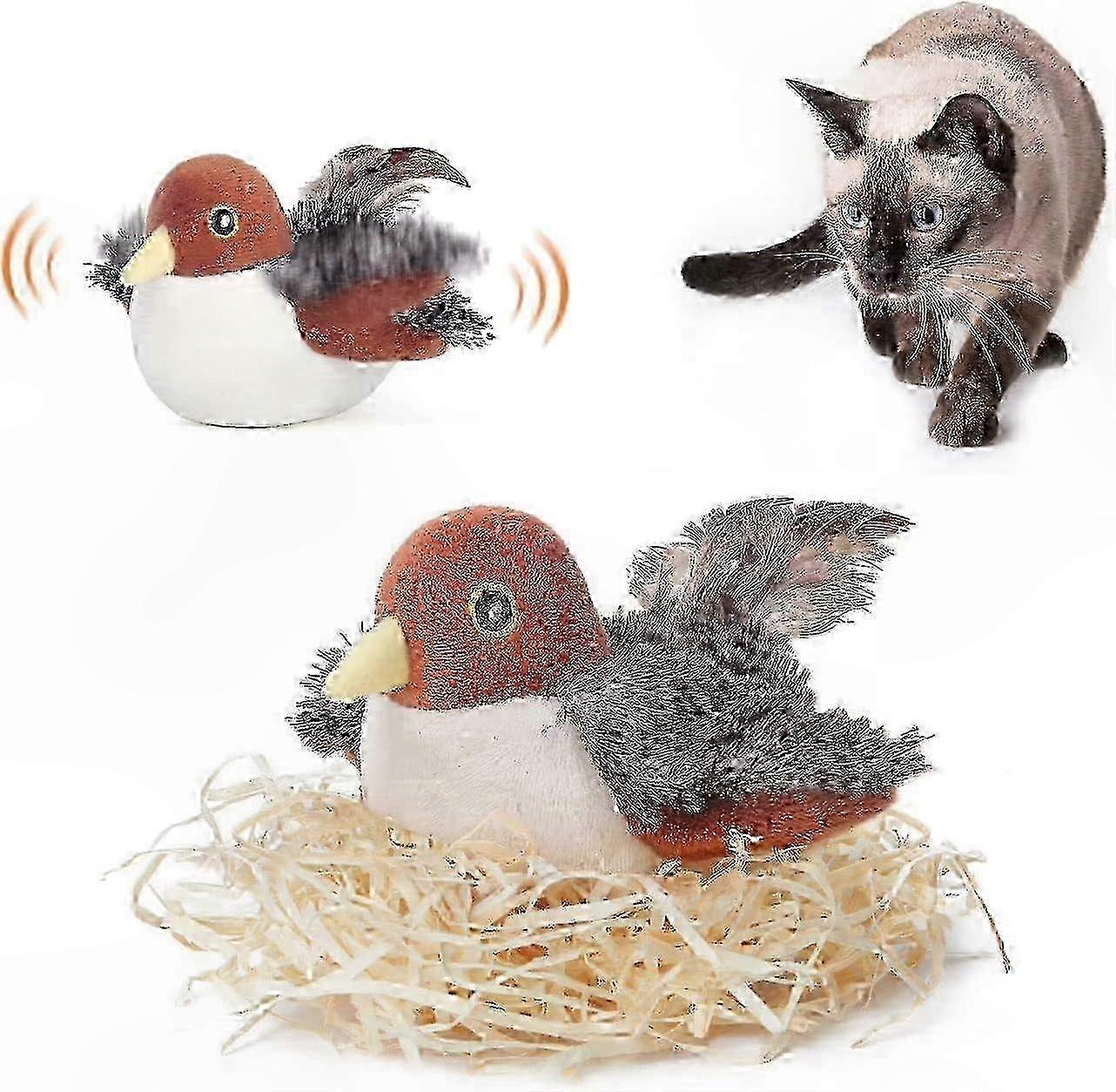Interactive Rechargeable Cat Toy, Realistic Bird Chirp Sound, Touch Activated Flapping Sparrow for All Cat Breeds