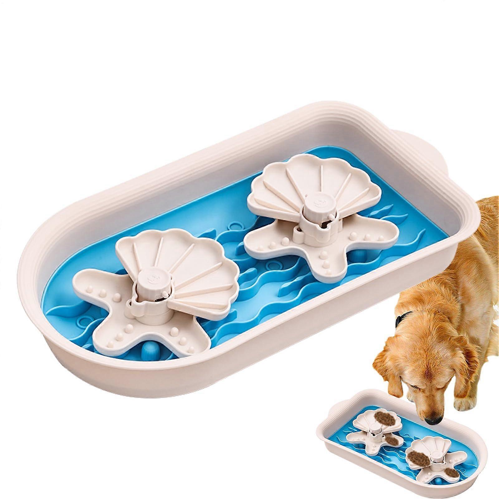Interactive Slow Feeder Bowls For Dogs And Cats, Double Bowl Design With Labyrinth Anti Choking, Treats And Yogurt Blue