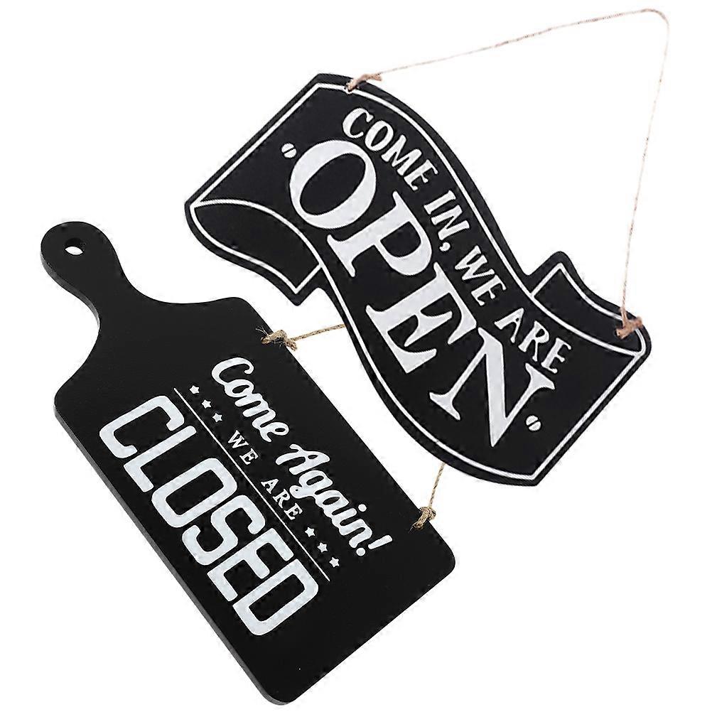 Open Closed Sign for Business Double Sided Hanging Door Sign in Black Synthetic Material 2 Pieces