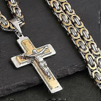 Jesus Cross Long Byzantine Chain Stainless Steel Necklaces Pendants For Men Christian Crucifix Necklace Religious Jewelry Colar/YY