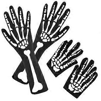 2 Pairs Skeleton Gloves With Skeleton Arm Sleeve Full Finger Long Arm Skeleton Gloves For Kids And A
