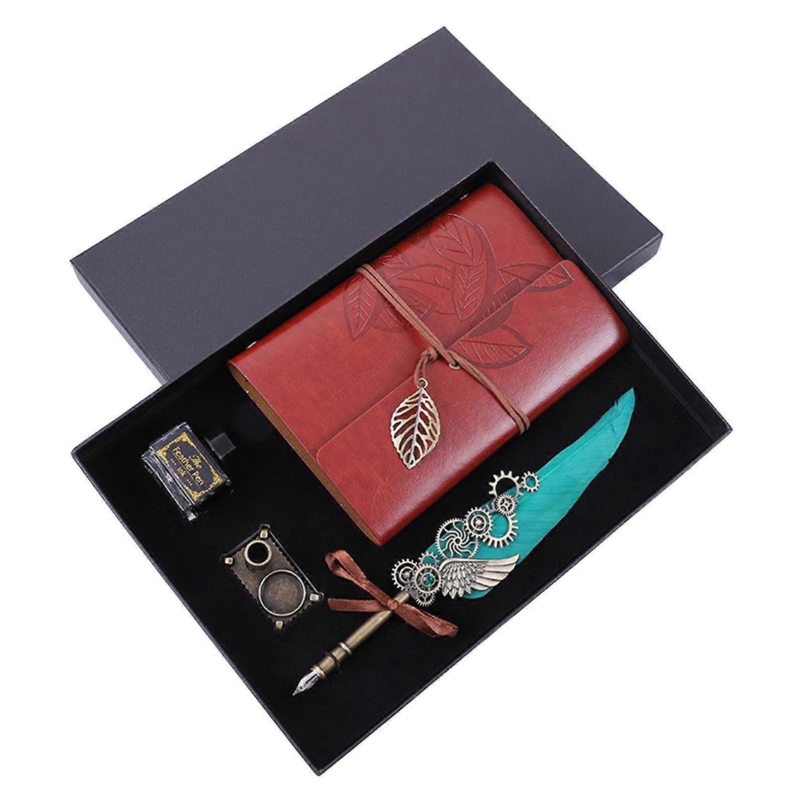 JIKAIX Quill Pen Elegant Vintage Strong Sturdy Smooth Writing Easy to Use Bright Color Feather Dip Pen Set with Notebook Ink for Boyfriend