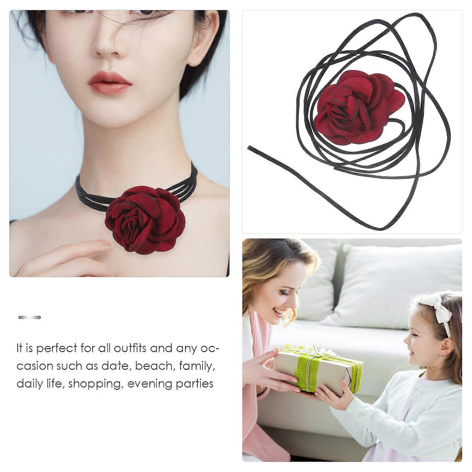 Red Rose Necklace Hanging Neck Choker for Decoration Use 2Pcs Lightweight Design