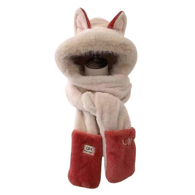 Winter Outdoor Warm Ear Protection Scarf, Fashionable One-Piece Plush Hat