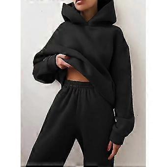 Winter Two Piece Sets Women Tracksuit Oversized Suit Autumn Trouser Sweatshirt Solid Sports Hoodie Sportswear - XC