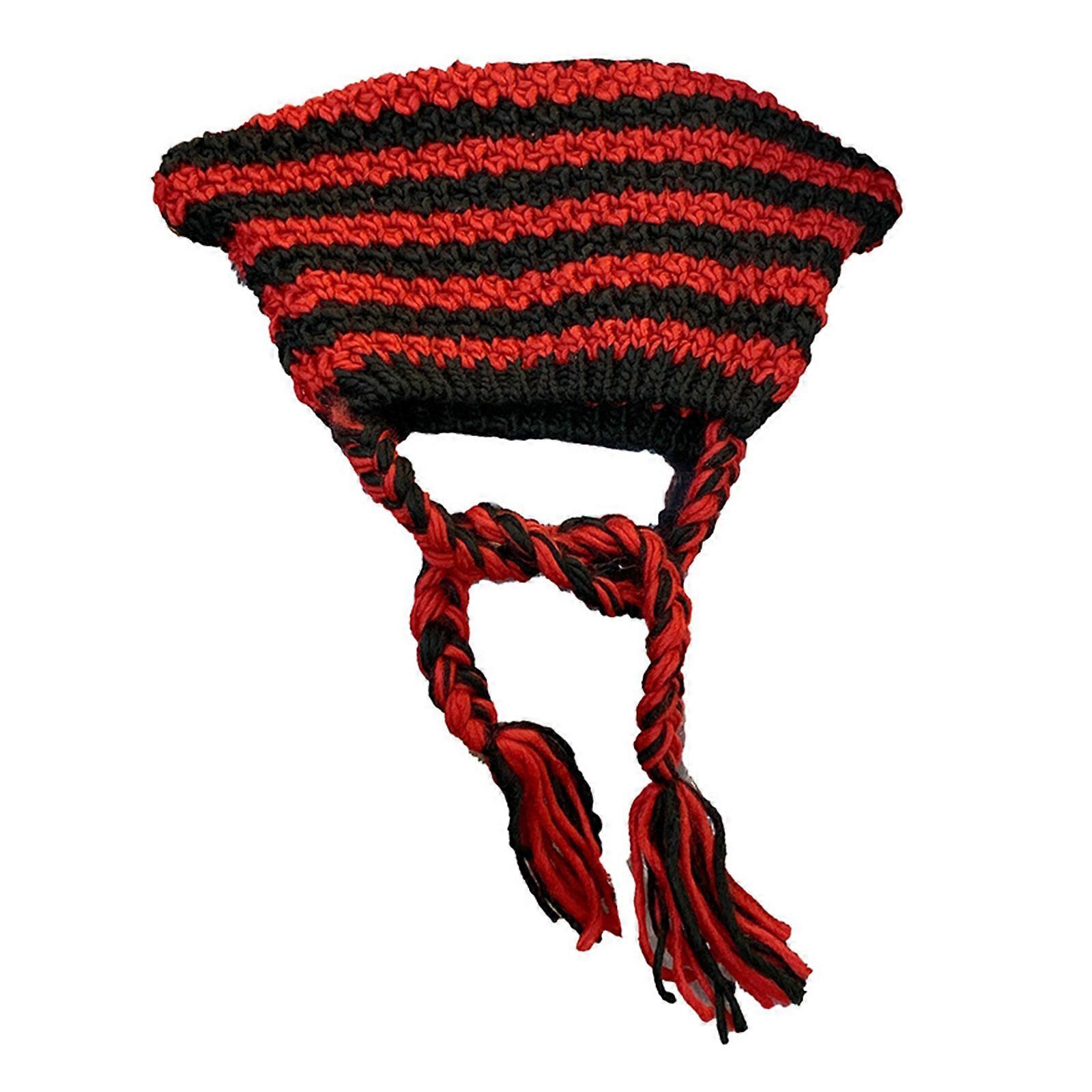 Winter Cute Knit Hat Ear Flap Crochet Beanie Hat Female Knitted Hat with Long Tassels Handmade Pullover Caps Red