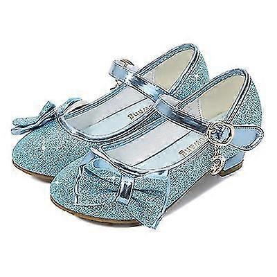 Girls Princess Shoes Butterfly Knot High-Heel Shiny Flower Girl Party Non-Slip Wearable Kids Leather Shoes Crystal Single Shoes