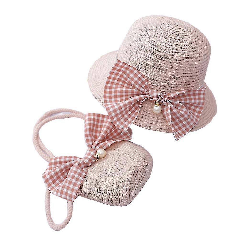 Girls Crossbody Bag Wide Brim Straw Weaving Bucket Hat Summer Outdoor Cap