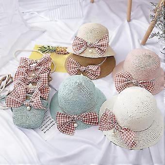 Kızlar Crossbody Çanta Geniş Brim Hasır Dokuma Kova Şapka Yaz Açık Şapka