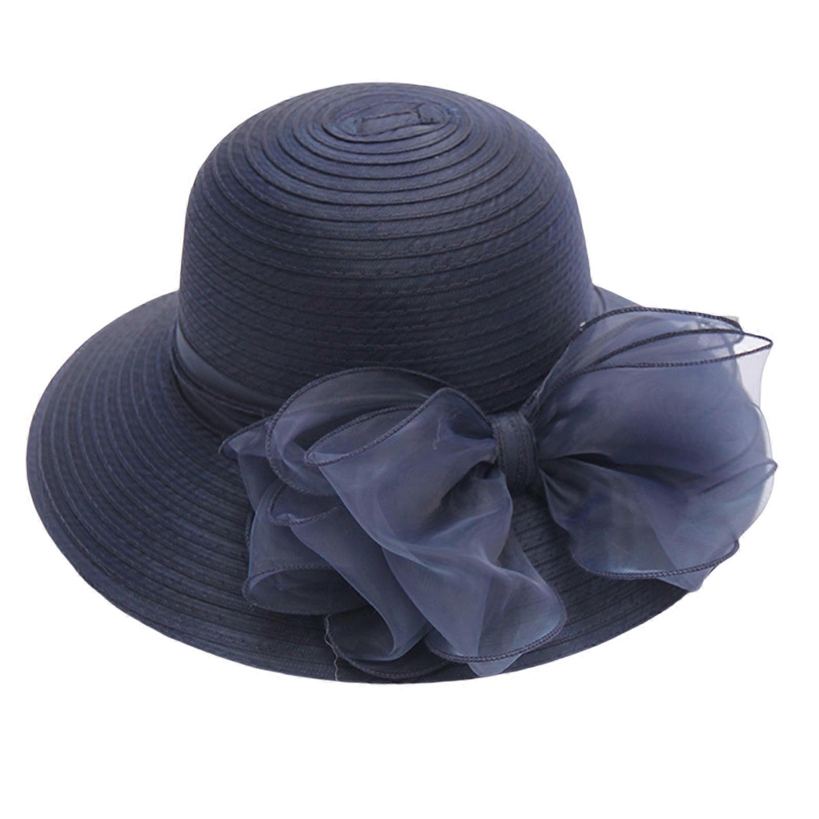Elegant Bucket Hat for Girls Women Fascinator Fisherman Hat with Large Bowknot Hat Fascinator Outdoor Summer navy blue
