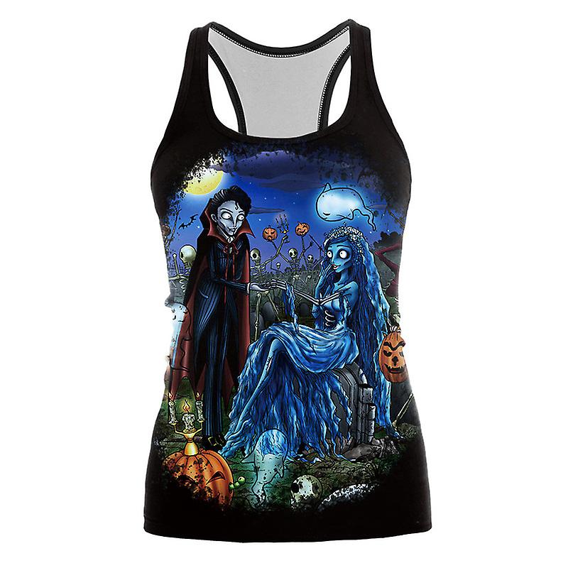 Women's Halloween Tank Tops Skull Print Nightmare Before Christmas Sleeveless Tank Top Shirts