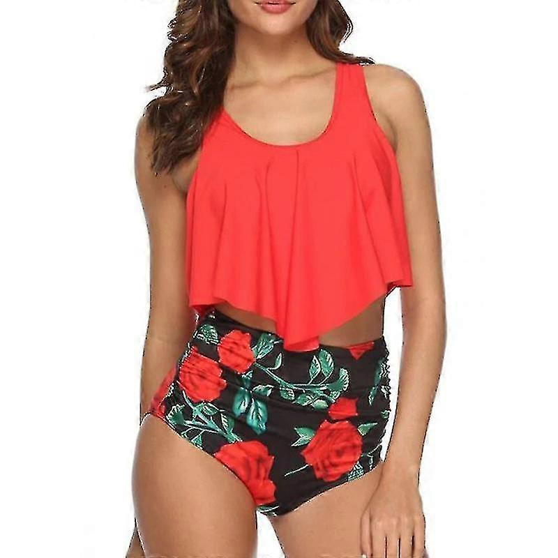 Women Floral High Waist Tummy Control Bikini Tankini Set Swimwear Swimsuit