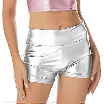 Kadın Direk Dans Şort Yüksek Bel Metalik Parlak Patent Deri Sıcak Şort Egzersiz Rave Partisi Direk Dans Altları Clubwear