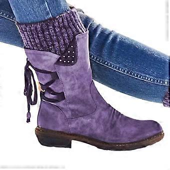 Women\'s Winter Warm Back Lace Up Snow Boots With Thick Heel Vintage Style Design-SCNTCN