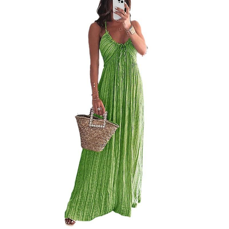 Women Girls Dress Comfortable High Waist Solid Color Sexy Strap Loose Long