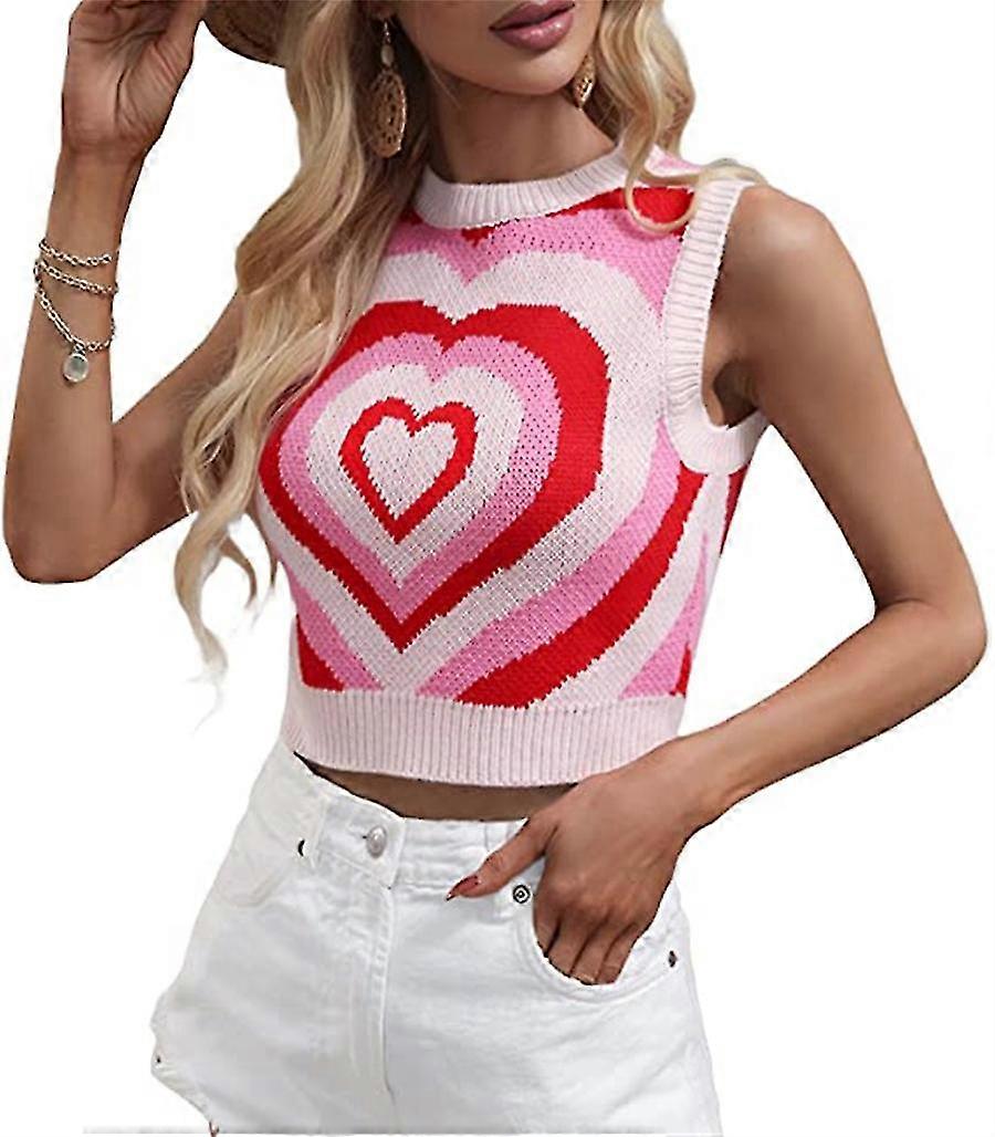 Women's Girl's Summer Sweater Vest Sleeveless Crew Neck Crop Knitted Tank Top Streetwear