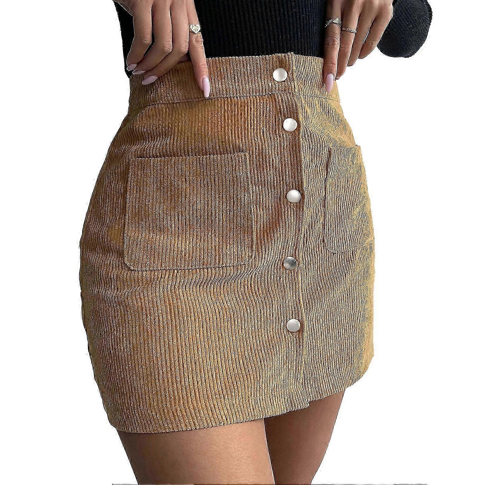 Women’s Corduroy Mini Short Skirt A-Line High Waist Slim Fit Button Pockets Fall Winter