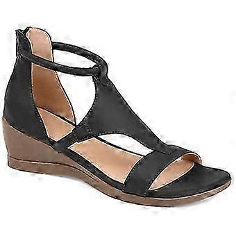 Women Wedge Sandals Open Toe Leather Shoes Mid Heel Zipper Sandal Summer Casual Sandal