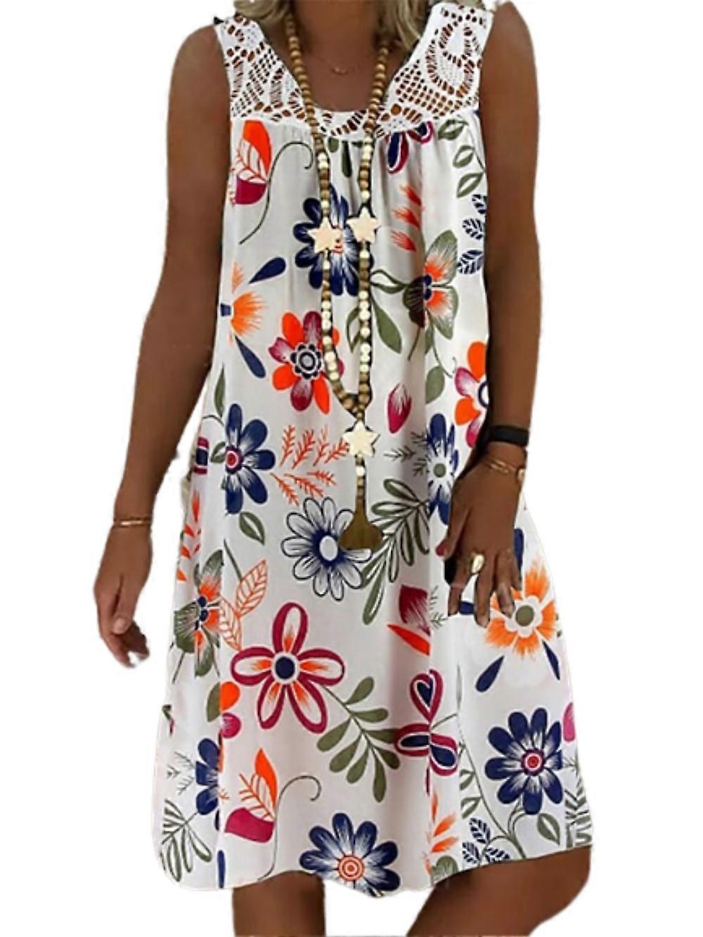 Women's Sleeveless Floral Print Round Neck Casual Boho Loose Dress