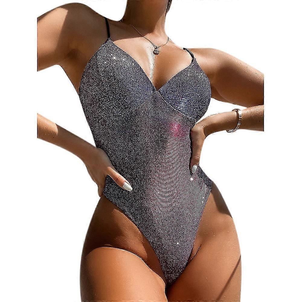 Women Glitter Swimsuit Push Up One-piece Swimwear Sparkly Beachwear Bathing Suit
