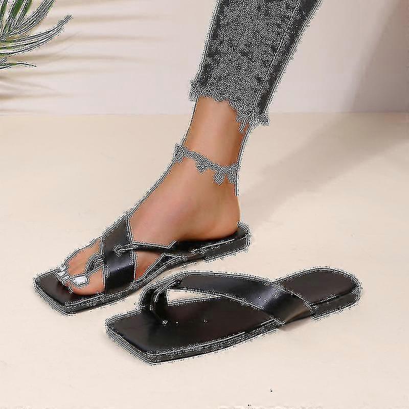 Women's Plat Square Peep Toe Sandals Slip-on Style Casual Shoes With Anti Slip Sole Summer