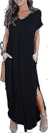 Women's Casual Loose Pocket Long Dress Short Sleeve Split Maxi Dresses