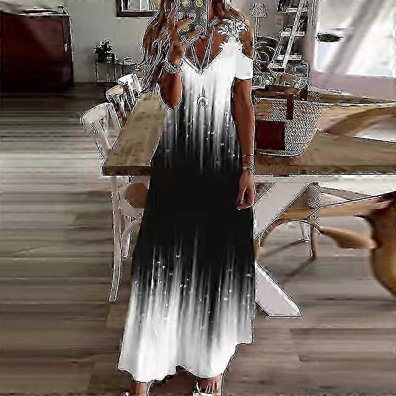 Women Casual High Waist Maxi Dresses Ladies Party Loose Short Sleeve