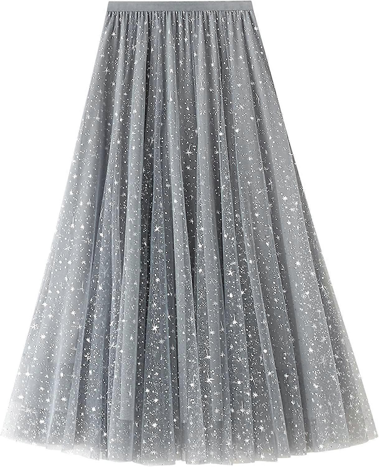 Women Tulle Skirt Floral Print Mesh Elastic High Waist Layered Tutu Skirt A-Line Midi Skirt S-2XL