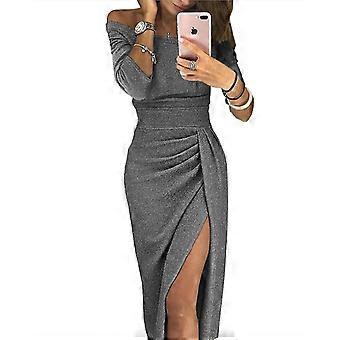 Kadın Wrap Kalça Yırtmaçlı Tek Yaka Elbise Işıltılı Elbise Abiye Elbise s202412244060