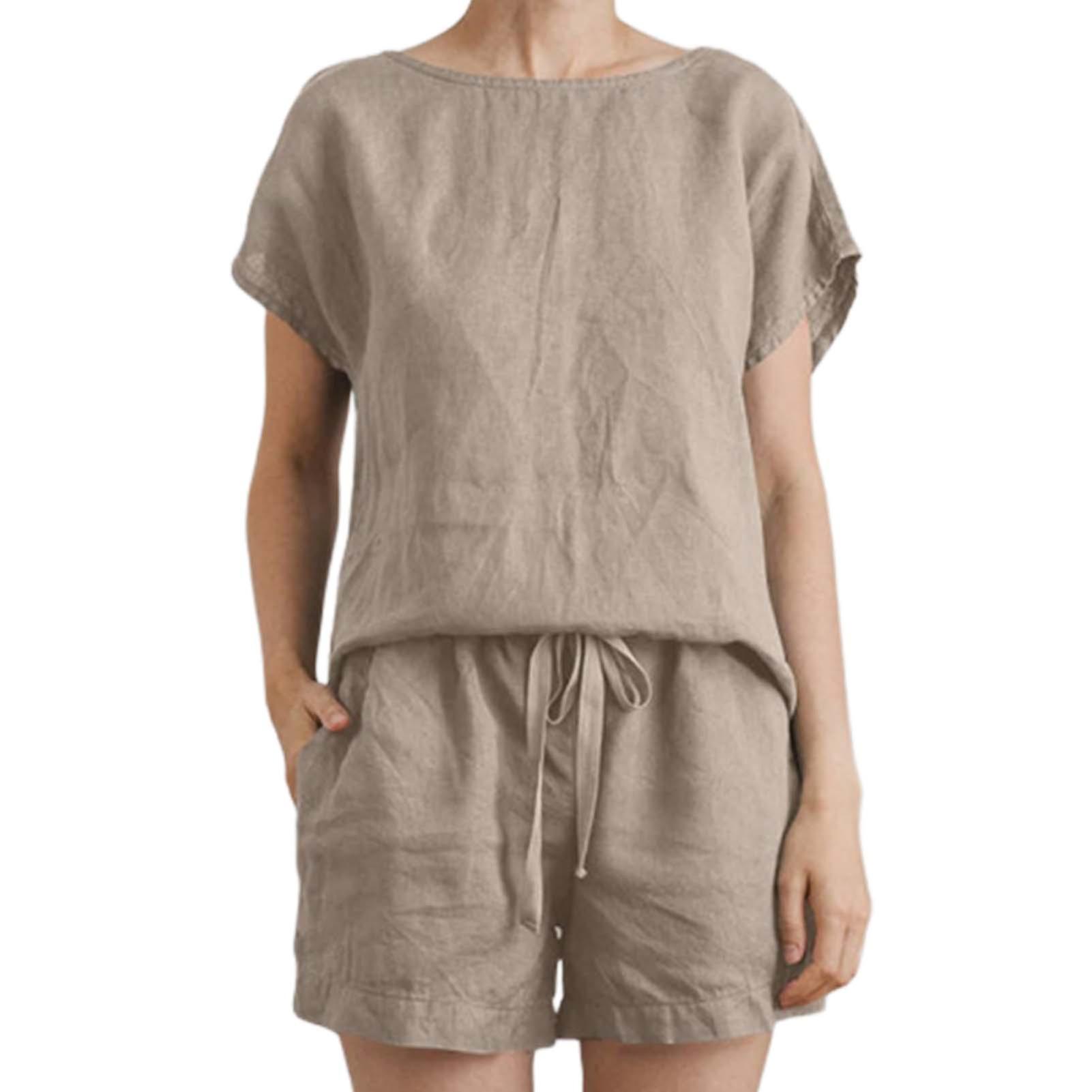 Women's Summer 2 Piece Outfits Short Sleeve Tops Shorts Pants Suit Sets