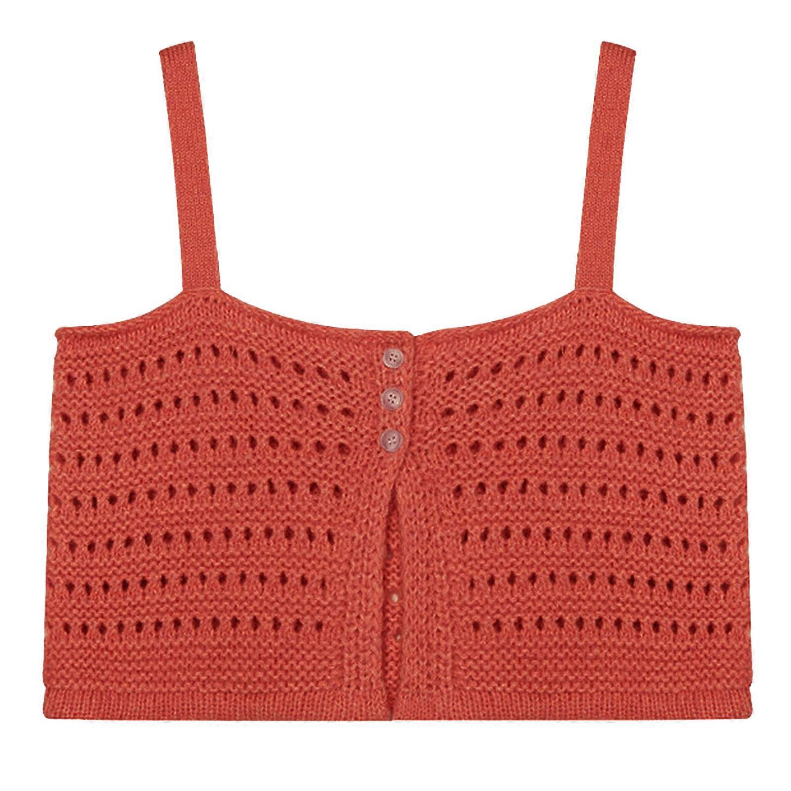 Women Summer Sling Crop Top Crochet Knitted Vest Waistcoat Hollow Camisole Vest