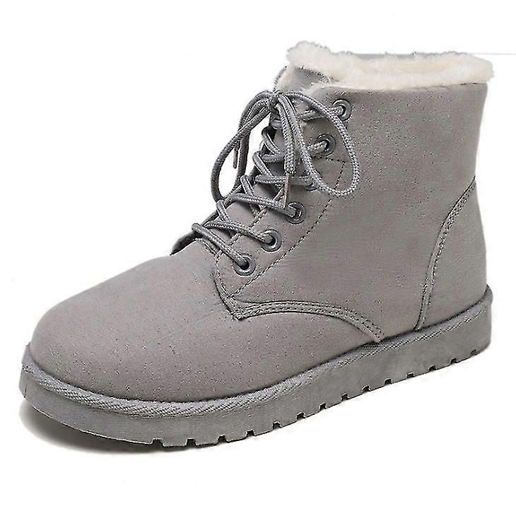 Women Plus Size Lace Up Suede Ankle Fur Snow Boots