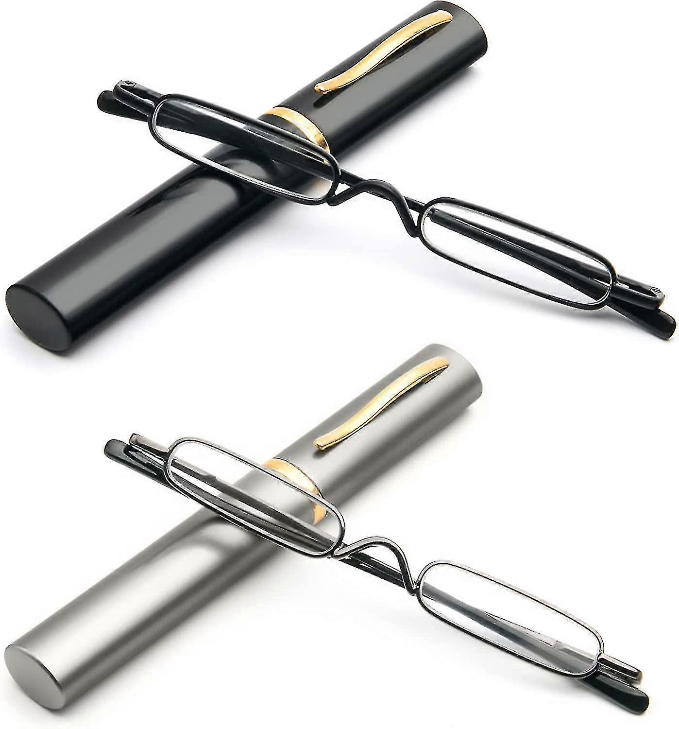 Mini Reading Glasses For Women Men 2 Pack Compact Small Pocket Metal Readers With Portable Case