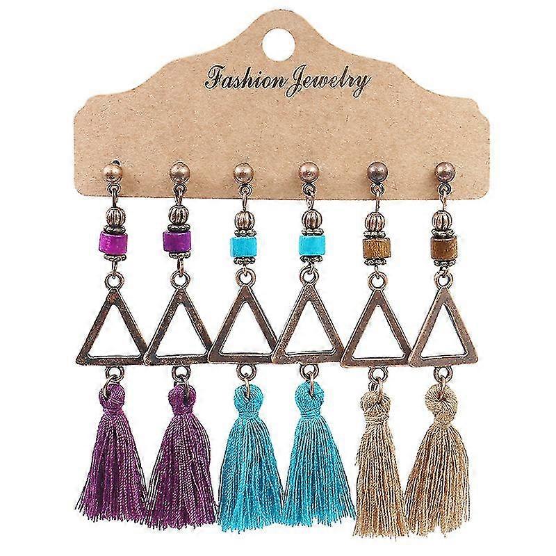 3 Pairs Bohemian Earrings for Women Dangle Earrings Retro Metal Hollow Earrings Boho Hoop Earrings Set