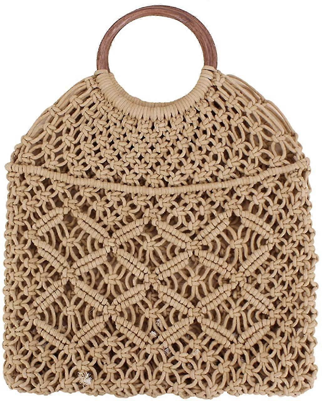 Handmade Straw Bag Travel Beach Fishing Net Handbag Shopping Woven Shoulder Bag For Women