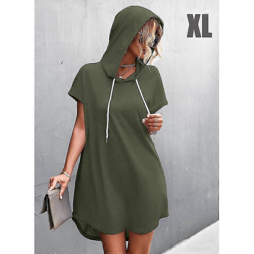 Summer Dress For Women Short Sleeve Hooded V-neck Solid Dresses For Casual