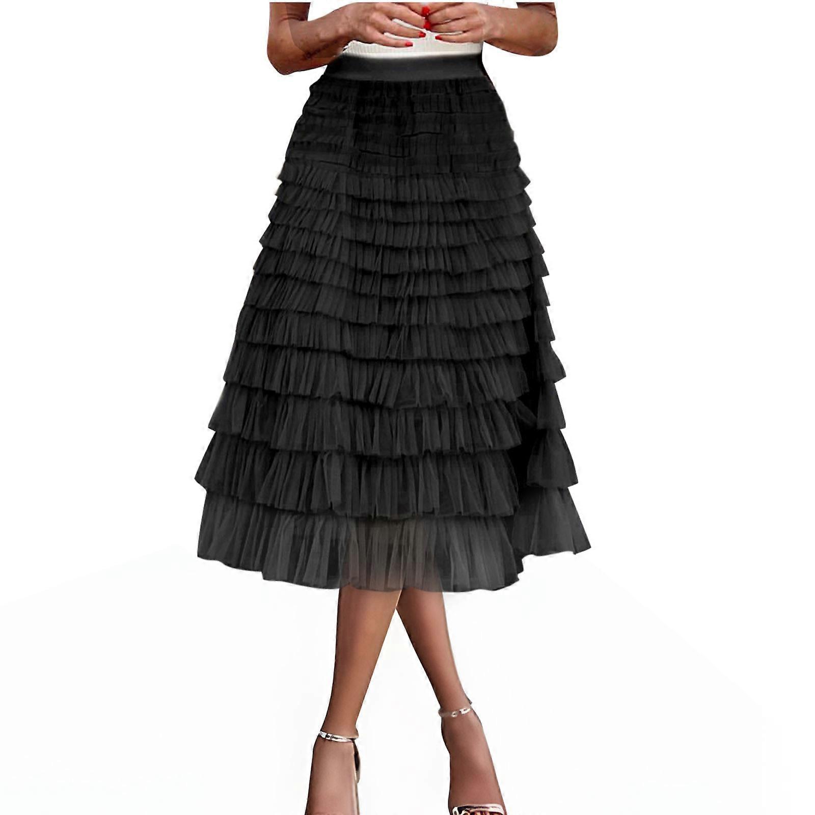 Women Fashionable Solid Color Commuting Mesh Cake Skirt