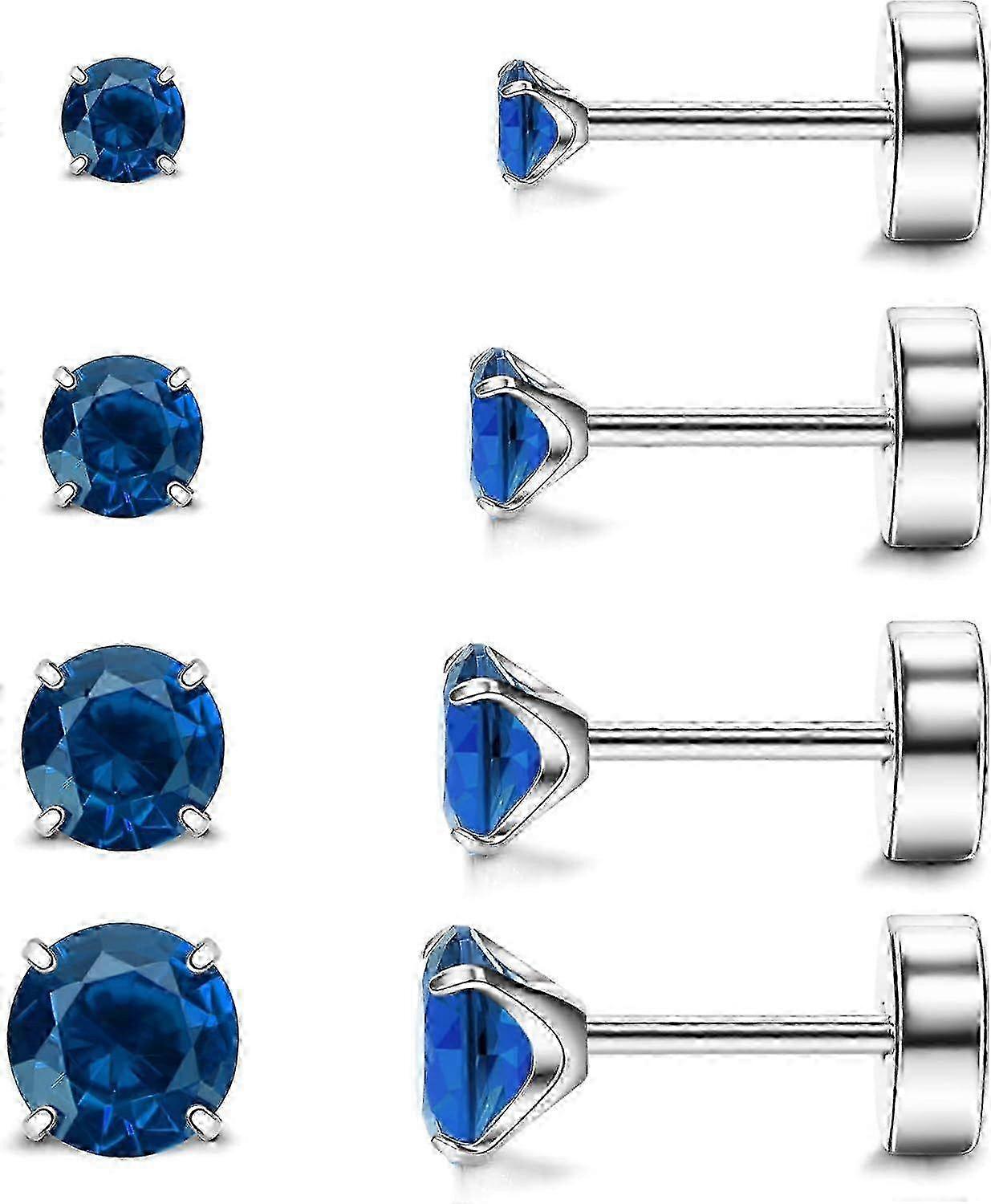 Hypoallergenic Titanium Flat Back Earrings for Women & Men - 4 Pairs Implant Grade Cartilage Studs with Screw Backs