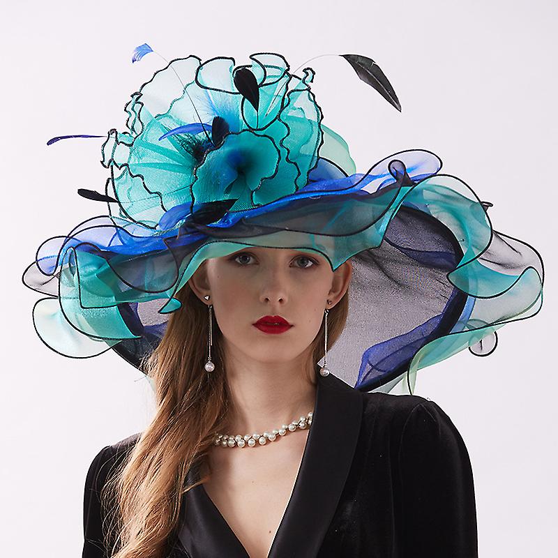 Women Party Church Derby Top Hats Organza Sun Visor Hat Ladies Flowers Fascinators Big Wide Hat