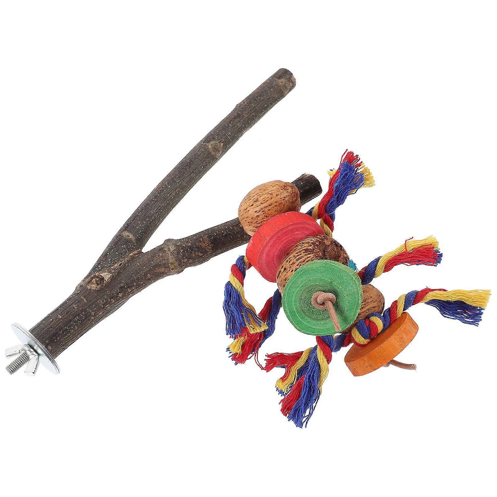 Wood Branch Perch Stand for Cockatiel Birds 1 Set Natural Bird Cage Accessory