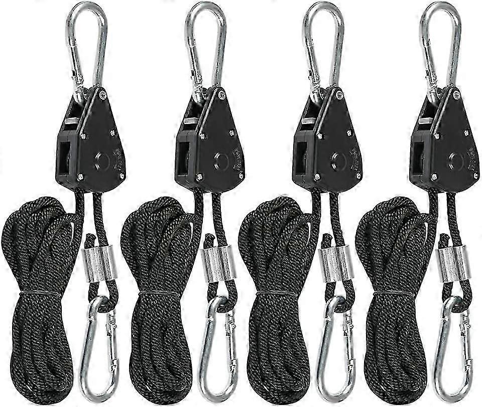 Pack of 4 Duty Heavy Rope Ratchet with Hooks, Adjustable Rope Ratchet for Plant Lamp, 150 lb, Adjustable Waxing Light Ratchet Rope