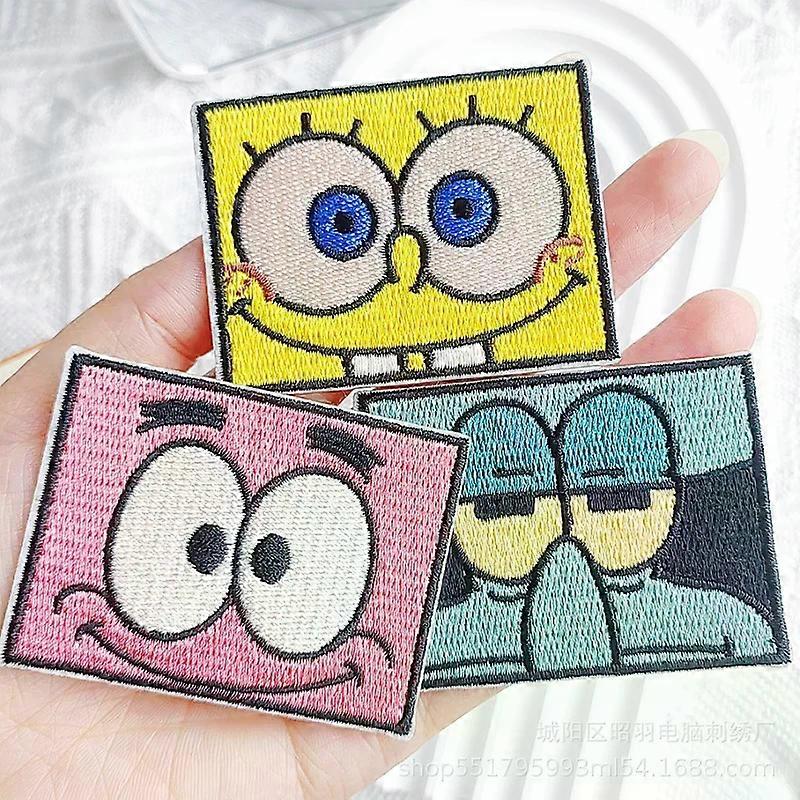 Cartoon SpongeBob Patrick Squidward Embroidery Patch Clothing Repair Subsidies Decorative Stickers for Clothing Bag Self Pasting