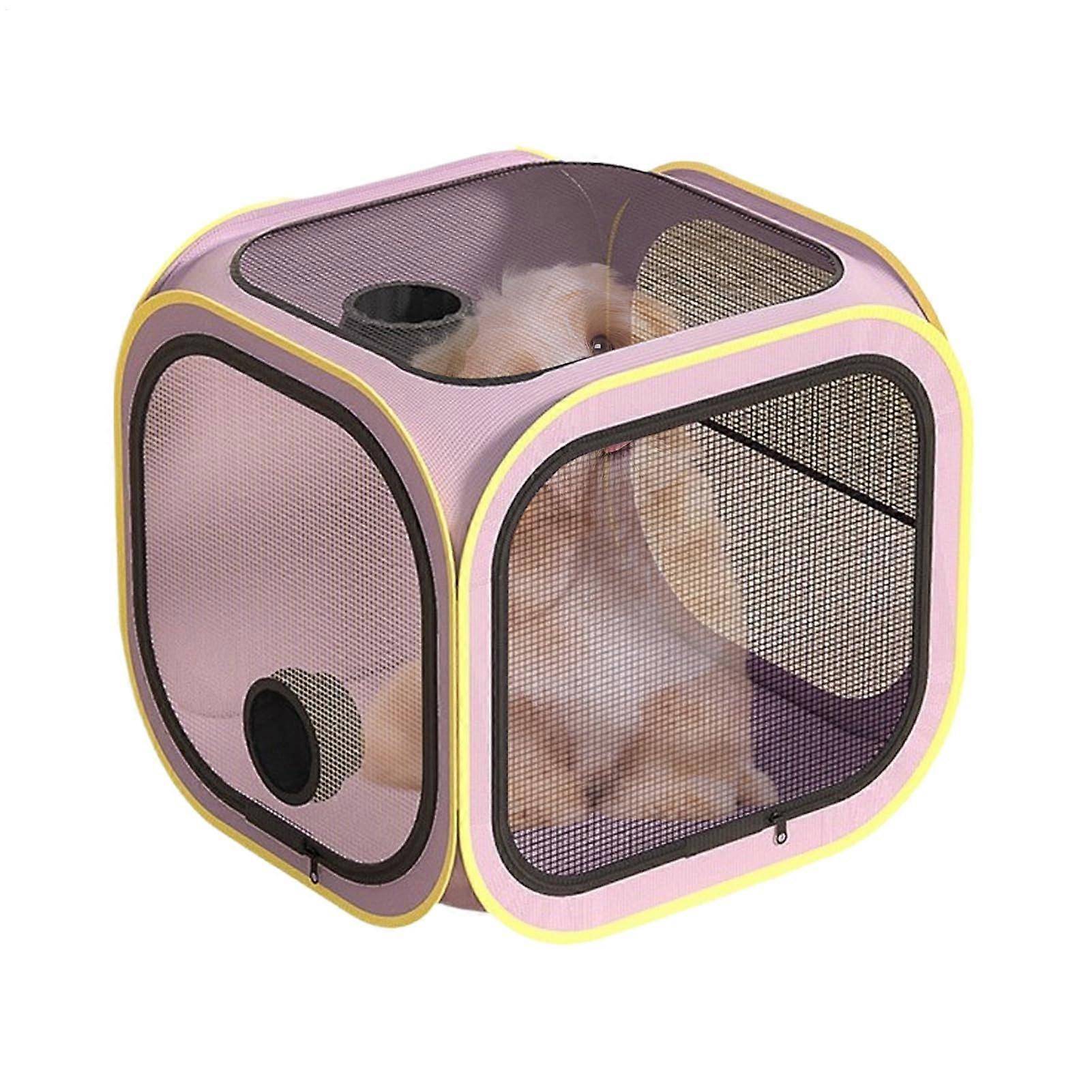 Pet Dryer Box for Cats and Dogs, Portable Grooming Drying Crate with Ventilation, Enclosed Anti-Hair Cage, Purple