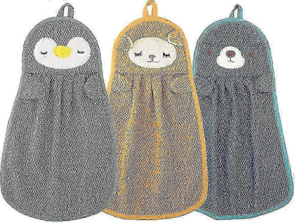 Kids Animal Print Hand Towels - Absorbent Quick Dry with Hanger Loop