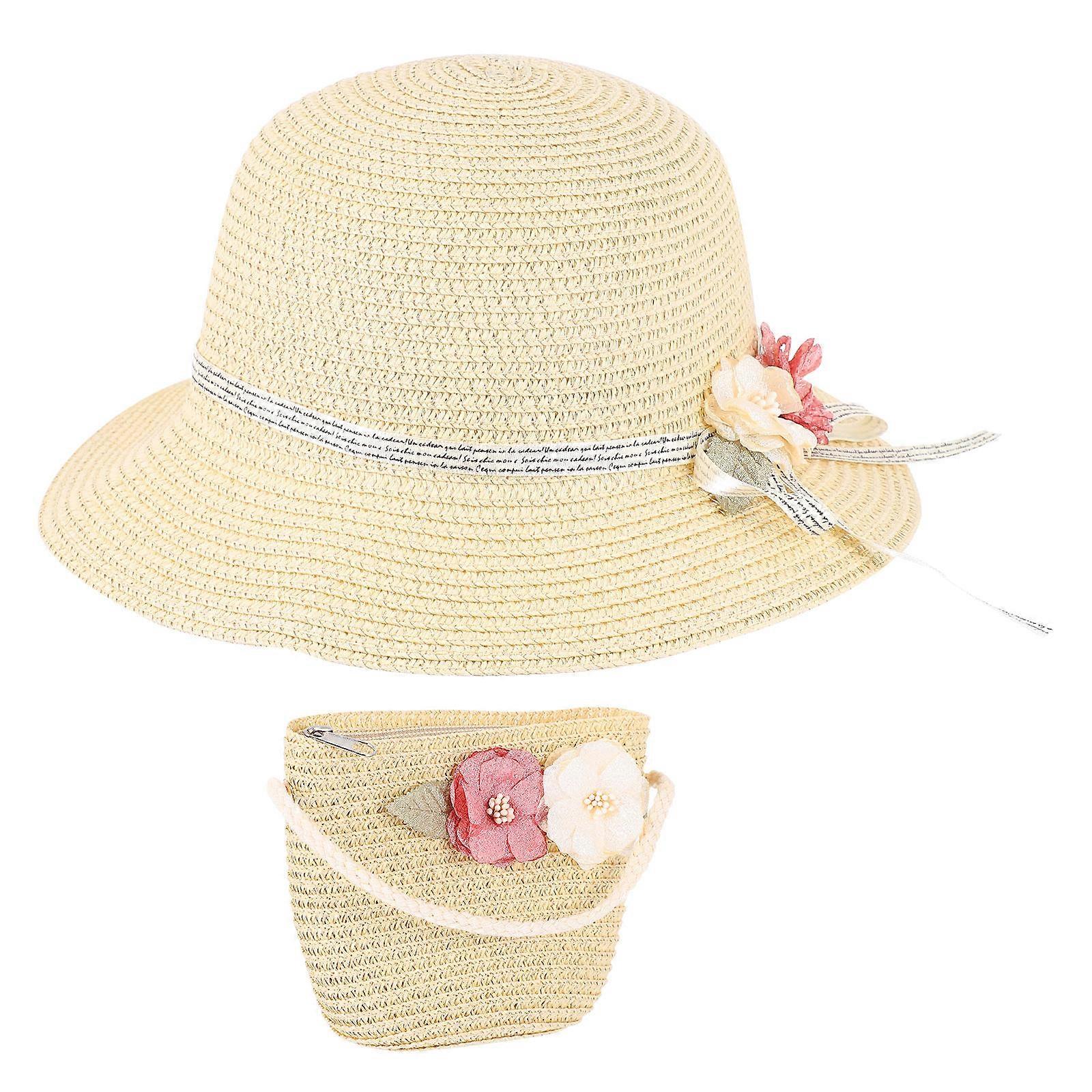Kids Straw Hat and Beige Beach Tote Bag Set with UV Protection Synthetic Material Comfortable Design