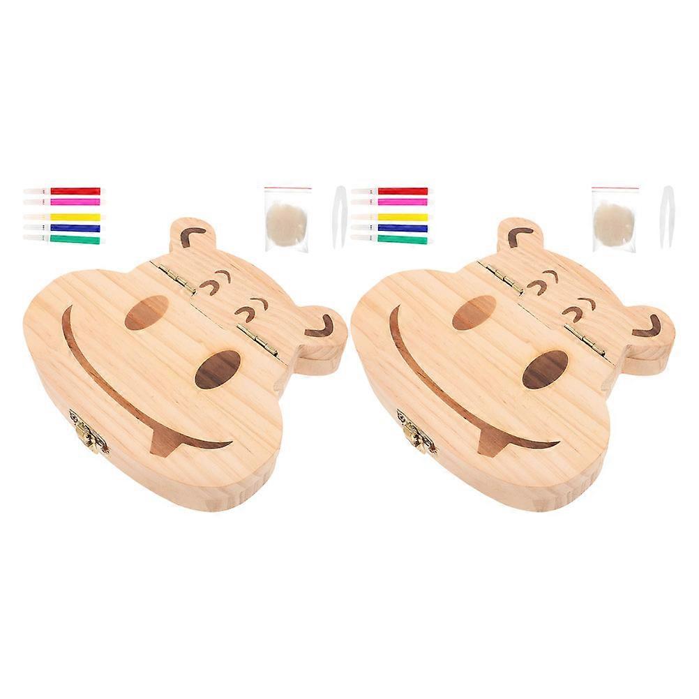 Kids Tooth Keepsake Box with Cotton and Tweezers 2Set Wooden Tooth Storage