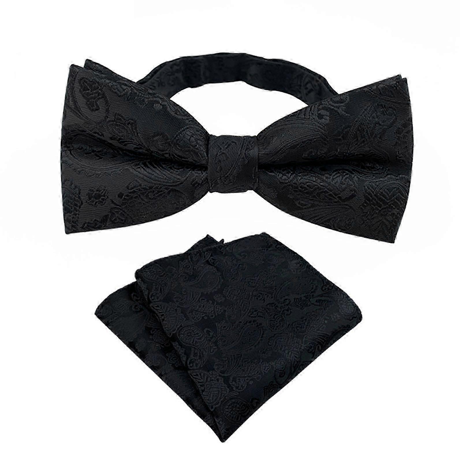 Classical Floral Jacquard Bows Tie with Matching Pocket Square Set for Men Neckwear for Weddings and Business Meetings